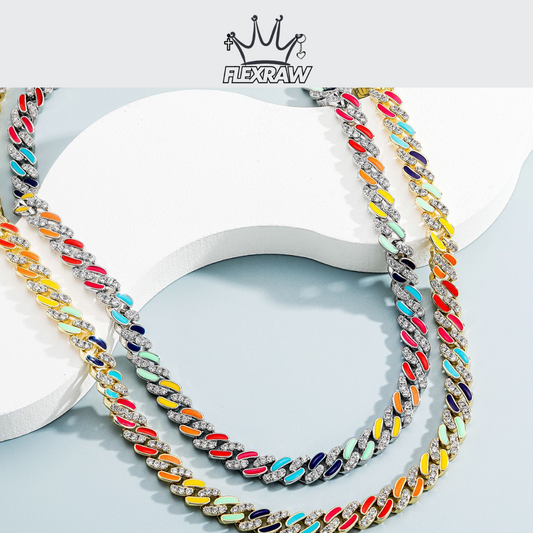 New Colorful Enamel Mixed Cubic Zirconia Cuban Chain Necklace for Men - Hip-Hop Style