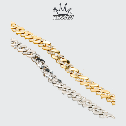8MM Rhombus Cuban Chain Bracelet with Color-Retaining Design and Rhinestone Accents